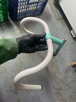 muy buen estado. manillar de carretera clasico. incluye la tija con potencia recien pintada en turquesa. tal cual se ve