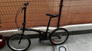 Bicicleta plegable de color negro, ideal para desplazamientos urbanos o para llevarla contigo a donde vayas. - Diseño compacto y ligero. - Ruedas de tamaño reducido. - Manillar ajustable