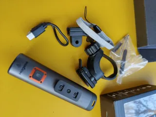 Luz frontal para bicicleta Magene AT1600, 1600 lúmenes IPx6 con accesorios: - Incluye cable de carga USB-C. - Soporte para manillar. - Correa de sujeción. - Herramientas de montaje. Es nueva solo usada para probarla para un reportaje