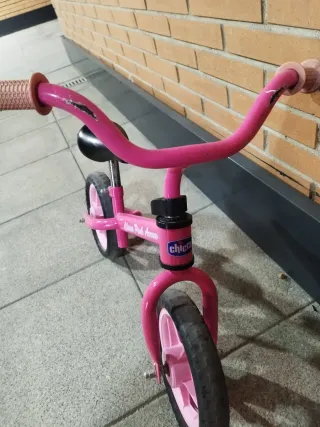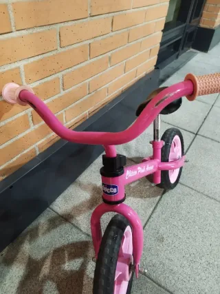 Bicicleta de aprendizaje rosa de la marca Chicco. - Manillar con puños. - Ruedas de goma. - Asiento ajustable.