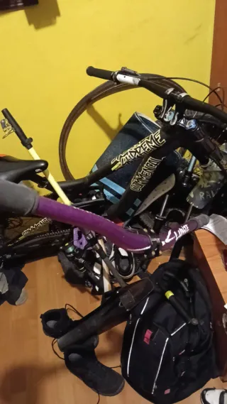 Bicicleta de dirt jump o stunt en color morado. Ideal para trucos y saltos. - Cuadro de dirt jump. - Ruedas de 26 pulgadas. - Horquilla delantera de aire - Frenos de disco xt deore y disco 180mm - 3 pares de pastillas de regalo - manillar surron - sillín mafia bikes -rueda y buje pasak