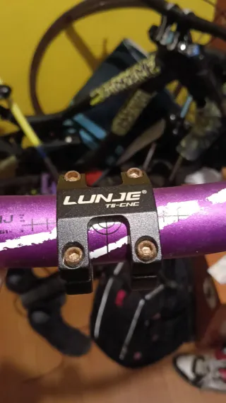 Acoples Manillar MTB Marca Tranz X Modelo Zanzibar Color Morado Anodizado Fabricados en Aluminio de 1 pieza Peso 18gr