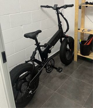 Bicicleta eléctrica de color negro. - Cuadro robusto. - Ruedas todoterreno. - Sillín cómodo. - Pantalla digital en el manillar.
