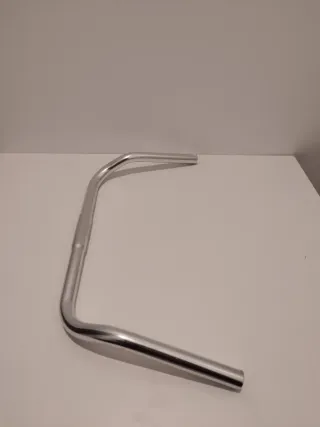 Manillar de bicicleta plateado. - Diseño curvo. - Acabado brillante.