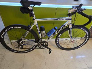 Bicicleta de carretera Mendiz RS3 con cuadro y horquilla de carbono. Ruedas Fulcrum Tubeless de carbono. Regalo ruedas originales. Talla 54, yo mido 1.77 y esta perfecta de dimensiones. Cambio Shimano 10 velocidades. La vendo por falta de uso, esta en perfecto estado. Manillar recien encintado. Solo venta en persona. Se puede ver sin compromiso - Cuadro de aluminio. - Ruedas Fulcrum Racing Speed XLR. - Manillar de carretera. - Portabidones incluidos.