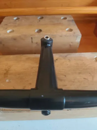 Manillar de bicicleta antigua con tija. Está en perfectas condiciones ,lo único que está estropeado el embellecedor como se aprecia en la fotografía.