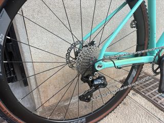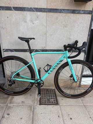 Bicicleta de ciclocross Canyon en color verde menta. Equipada con grupo Shimano 105. - Cuadro de aluminio - Frenos de disco. - Ruedas Vision. - Manillar de carretera.