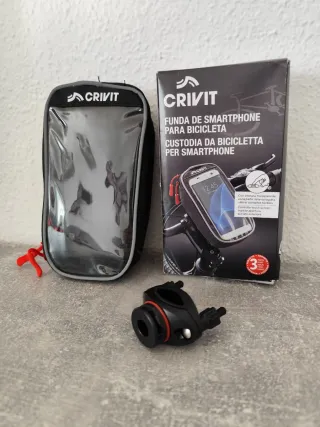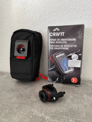 Funda Crivit para proteger tu smartphone mientras vas en bicicleta, moto o patinete. Permite el uso de la pantalla táctil. - Incluye soporte para manillar. - Ventana transparente para pantalla táctil. - Cierre con cremallera.