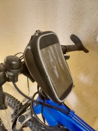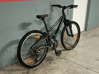 Bicicleta de montaña en color azul. El sillin esta un poco desgastado. - Cuadro de metal. - Ruedas todoterreno. - Sillín negro. - Manillar azul.