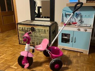 Triciclo infantil (10 meses - 6 años) con manillar para empuje. Es ideal para paseos cómodos, seguros y sobre todo ¡divertidos!. Perfecto para que el adulto pueda dirigir el triciclo mientras el niño disfruta del paseo. Además el niño puede poner sus juegues en la cesta trasera. ✔️ Manillar trasero largo para empujar y dirigir ✔️ Asiento cómodo y estable ✔️ Ruedas resistentes ✔️ Diseño práctico y fácil de manejar 💬 Cualquier duda, ¡pregunta sin compromiso!