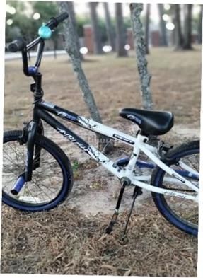 Bicicleta BMX de color negro. - Ruedas de 20 pulgadas. - Manillar de BMX. - Sillín con diseño. Los dos por 50e