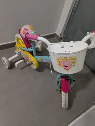 Bicicleta infantil en color rosa, ideal para niñas. - Cuadro de metal blanco con detalles rosas. - Ruedines de apoyo incluidos. - Sillín y manillar ajustables. - Frenos delanteros y traseros.
