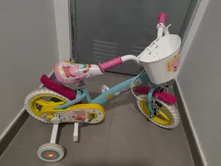 Bicicleta de niña con ruedas de 12 pulgadas, ideal para los primeros paseos. - Color rosa con detalles de princesas. - Incluye ruedines de apoyo. - Sillín y manillar ajustables.