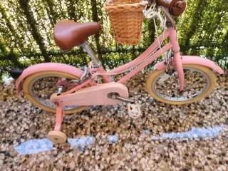 Bicicleta infantil de color rosa, ideal para los más pequeños. Cuenta con una cesta de mimbre en el manillar. - Ruedines de apoyo incluidos. - Sillín y manillar ajustables. - Diseño atractivo y divertido.
