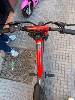 Bicicleta eléctrica de diseño deportivo, ideal para niños. Cuenta con un cuadro robusto y ruedas todoterreno. - Cuadro de color gris y rojo. - Puños de manillar rojos. - Ruedas con tacos para mayor agarre. Precio original 1.200€