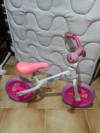 Bicicleta de aprendizaje de la marca Chicco, ideal para los primeros pasos en el mundo de las dos ruedas. Su diseño en color rosa la hace muy atractiva. Se puede ver en las fotos que tiene algún desperfectos del uso - Manillar ajustable en altura. - Sillín ergonómico, se ajusta a la altura - Ruedas de goma antipinchazos.