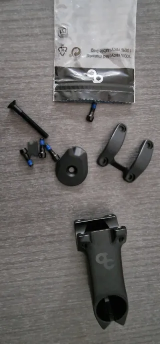 Todavía está en su embalaje original. El manillar se ve envuelto en papel porque viene asi y he preferido dejarlo tal cual viene. Se entrega con factura. Manillar de carretera Cadex Race integrado. - Ancho: 42 cm (drop) / 39 cm (hoods). - Longitud de la potencia: 100 mm. - Material: Carbono.