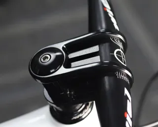 Manillar de bicicleta de carretera la marca Cannondale. - Color negro. - Diseño curvo.