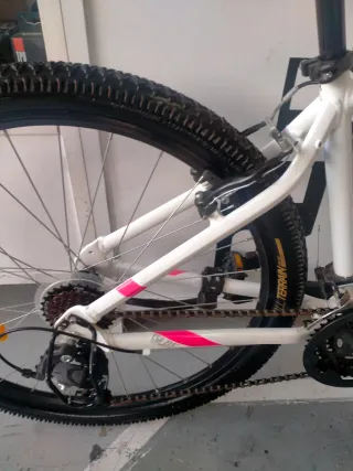Bicicleta de montaña con cuadro blanco y detalles negros. - Ruedas todoterreno. - Manillar con puños. - Sillín negro. -Negociable el valor