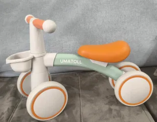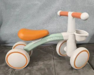 Bicicleta de aprendizaje Umatoll, ideal para los más pequeños a partir de los 12 meses. Su diseño ligero y seguro les permite explorar y ganar confianza. - Color blanco y verde menta. - Asiento naranja. - Ruedas blancas con aro naranja. - Manillar con puños naranjas y blancos. - Cesta delantera. PRÁCTICAMENTE NUEVA.