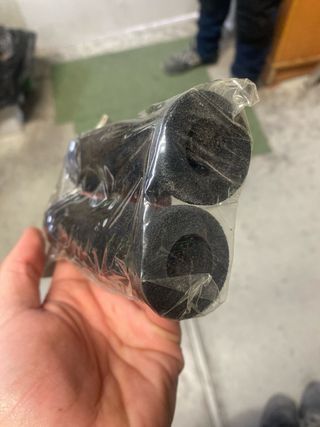 3 pares de puños de espuma para manillar de bicicleta. 6 unidades en total. Están precintados. - Cada juego incluye 2 tapones negros - Ancho 130 mm 👉🏼 Más productos en mi perfil