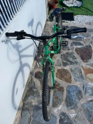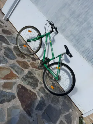 Bicicleta de montaña Wolfbike Stripe en color verde y ruedas de 29 pulgadas. - Cuadro de aluminio. - Frenos de disco mecanicos - Suspensión delantera com bloque mecánico - Cambio y mandos shimano. - Ordenador Inbike - Extras añadidos: cronómetro, bolsa manillar, pie de bici... Lugar de venta: Móstoles, Madrid