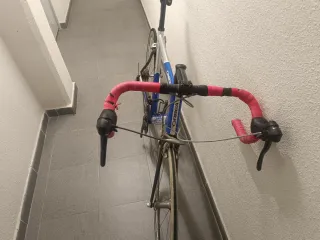 Bicicleta de carretera Orbea Aqua con un diseño llamativo en azul y plata. - Cuadro de aluminio. - Manillar de carretera. - Ruedas de 700c. Bici utilizada en rodillo el 90% habria que hacerle una revisión vendo por no usar precio algo negociable con tirantes de carbono delante y detras y bielas ultegra Talla 56 para 175 a 1.85