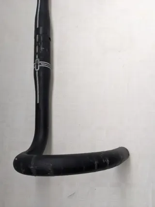 Manillar de carbono marca Evo. Diseñado para ciclismo, ofrece un acabado negro mate. - Material: Carbono. - Color: Negro mate. - Marca: Evo. Marcas de uso en zona de puños , frenos y cambios, la parte visible está bastante bien. 167 gramos de peso