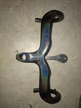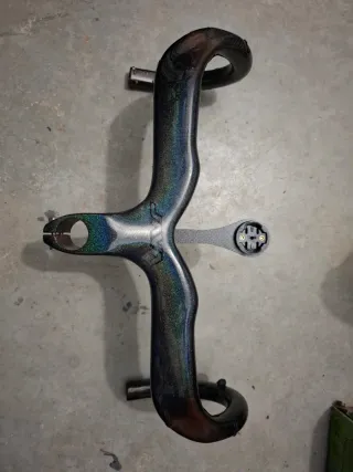 Manillar con potencia integrada de carbono color iridiscente y soporte para gps en carbono, Ancho de manillar 440mm y potencia de 100mm