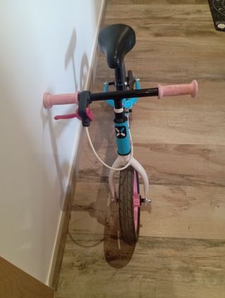 Bicicleta de aprendizaje para niñas, ideal para iniciarse en el mundo de las dos ruedas. - Color azul y rosa. - Manillar con puños rosas. - Sillín negro.
