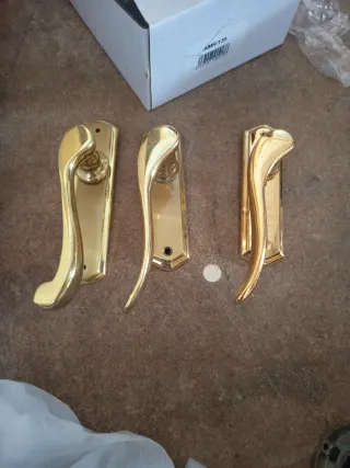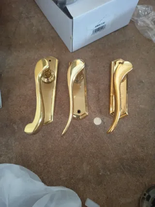 Manillas doradas para ventanas . Son diferentes