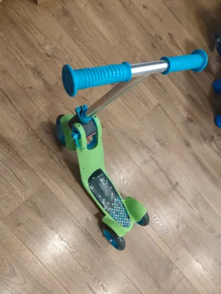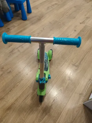 Patinete infantil de tres ruedas en color verde, ideal para los más pequeños. Se adapta a su crecimiento. - Manillar ajustable en altura. - Ruedas con luces LED. - Plataforma antideslizante.
