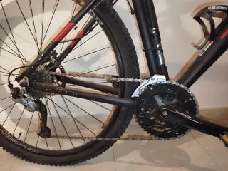 Bicicleta de montaña Trek en color negro y rojo. Ideal para disfrutar de rutas y senderos. De he hecho es una bici nueva que ha sido utilizada 2 o 3 veces - Cuadro de aluminio. - Ruedas de 29 pulgadas. - Frenos de disco. - Sillín y manillar de la marca Bontrager.