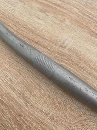 Manillar de aluminio para bicicleta de paseo. Su diseño curvo ofrece una posición cómoda. 25.4 mm ø Tiene algunas marcas de desgaste en el cromado.