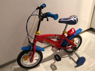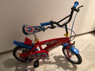 Bicicleta infantil con diseño de Spiderman. - Color azul con detalles rojos. - Ruedines de entrenamiento incluidos. - Manillar con puños rojos.