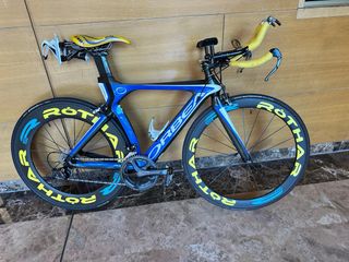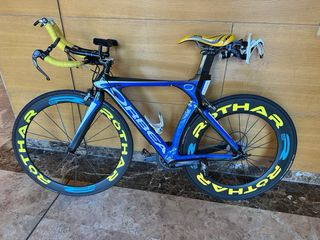 Bicicleta de triatlón Orbea Ordu con un diseño aerodinámico y componentes de alta calidad. - Cuadro de carbono. - Talla 48. Para 170 Cm y alrededores. - Ruedas Rothar con eje de carbono y radios planos. Perfil 50 y 88 (valen mas que el precio total de la oferta) - Desviadores y frenos Dura-ace - Bielas ultegra de 170mm - Manillar vision y potencia FSA - Ruedas nuevas balon de 25. Continental sprinter y gatorskin