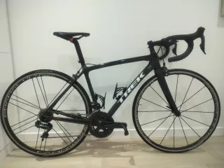 - Cuadro de carbono. - Talla T52. - Modelo Émonda SLR H1. - Cambio electrónico Prácticamente nueva, sin uso. Es una bici increíblemente ligera, de tan solo 6'6 kg con pedales y porta bidón. Está montada a full. Cambio electrónico Ultegra Di2. Integrado el sensor de cadencia en el cuadro. Ni un solo rasguño. La bici esta impoluta. La talla es para una altura de más o menos 1,69cm Cuadro Trek Emonda SLR H1 T52 1005gr Tija SLR+casquillo, 17cm 25mm retraso 95gr Manillar Bontrager XXX aero, 42cm 240gr Grupo Ultegra Di2 electronico Ruedas Shamal Ultra 1449gr Pedales Look Keo2 Max Carbon 250gr Cierre rápido Zipp QR titanio 65gr