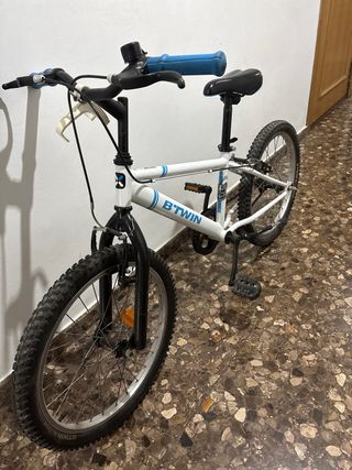 Bicicleta infantil de la marca B'TWIN en color blanco. - Ruedas de 20 pulgadas. - Manillar azul. - Sillín negro. Apenas usada