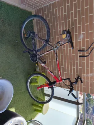 Bicicleta de montaña Scott con ruedas de 26 pulgadas. Ideal para senderos y caminos. - Suspensión regulable en precarga y rapidez del rebote con opción a bloqueo - Cuadro de aluminio - Frenos de disco. - 9x3 velocidades - pedales mixtos. Lleva calas y normal por la otra parte - doy dos cámaras, timbre y accesorios del manillar más la bolsa que lleva en el cuadro
