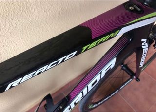 MERIDA REACTO CF4 CARBON - DURA ACE Vendo Merida Reacto CF4 Carbon talla M/L, cuadro tope de gama de la marca en su generación, muy ligera y rígida, perfecta para quien busca una aero rápida y fiable. Montaje de alto nivel: • Cuadro: Reacto CF4 Carbon • Horquilla: Reacto Carbon Superlite Direct • Grupo completo Shimano Dura Ace Di2 11v • Frenos Dura Ace Direct Mount • Bielas Rotor 3D • Cassette Shimano CS-9000 11-28 • Ruedas Fulcrum Racing Speed 50 carbono (añadidas posteriormente, gran mejora respecto a las originales) • Manillar FSA K-Force Compact • Sillín Prologo Nago Evo Triax • Cubiertas Vittoria Rubino Pro Graphene
