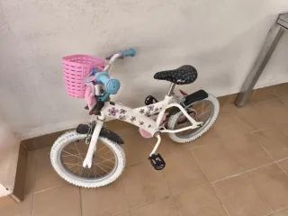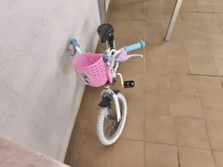 Bicicleta de paseo para niñ@s, con un llamativo color rosa. - Sillín acolchado. - Manillar con puños rojos. - Rueda trasera de color morado. Se ha usado muy poco, necesitaria una revisión pero está muy bien.