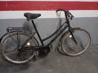 Bicicleta clásica en color negro, ideal para coleccionistas o como elemento decorativo. - Signos oxido manillar. - Marco de metal. - Ruedas de 26 pulgadas. - Sillín negro. - Portaequipajes trasero.
