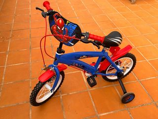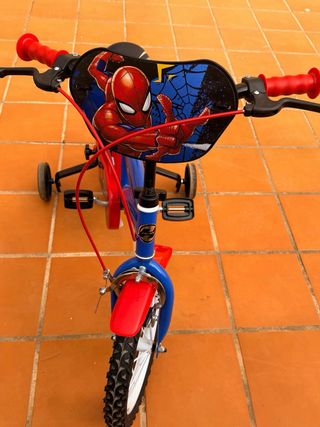 Bicicleta infantil con diseño de Spiderman, ideal para los más pequeños. - Color azul y rojo. - Ruedines de apoyo incluidos. - Manillar con puños rojos y protector delantero de Spiderman.