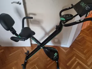 Bicicleta estática Cecotec Fit Pro en color negro con detalles en verde. - Respaldo, manillar y sillín regulables. - Pantalla LCD. - Ruedas para fácil transporte. - Peso máximo soportado: 100 Kg.