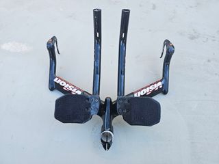 Manillar de carbono con acoples para triatlón. Diseñado para mejorar la aerodinámica y la comodidad en largas distancias. 42cm - Material: Carbono - Tipo: Manillar con acoples