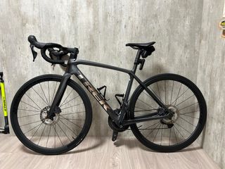 Bicicleta de carretera Trek de carbono, ideal para ciclistas exigentes. Su diseño aerodinámico y componentes de alta gama la hacen perfecta para rutas largas y competición. - Cuadro de carbono OCLV Serie 500. - Frenos de disco hidráulicos. - Transmisión Shimano Ultegra. - Ruedas Bontrager eaulus carbono 35 - manillar bontrager integrado de carbono -potenciómetro 4iii -velocidades 11-32 -platos 52-36 t -talla 52