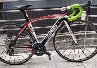 Bicicleta de carretera RIMO Aero Road con cuadro de carbono. - Cuadro monocasco de carbono. - Frenos Shimano Ultegra. - Cambios Ultegra ( Shimano) - Ruedas aluminio Kysiriun SL - Cubiertas de 25" - Manillar y potencia RIMO. - Cinta de manillar verde. - Sillín anti prostático - Manetas de freno Durace (Shimano) - Bielas y eje pedalier Ultegra. - Para altura de 1,65 hasta 1,73 - Cables interiores nuevos, sin estrenar - Pesa 8 kilos