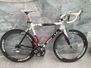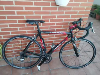 Talla 54 M. Cuadro full Carbono, horquilla Opus Carbono y tija :trasera Opera de carbono, 275€ Equipamiento Shimano 105 2x10. 175€. Ruedas Shimano RS 100 Ready Tubeless, ahora lleva neumáticos con cámara convencional 150€. Manillar Most de Alu/Carbono 75€. Fabricada en Italia por Fausto Pinarello, hijo del fundador de la marca. Buen estado, funciona perfectamente, con algunas marcas de uso. Escucho ofertas. No envío, entrega en mano en Valencia.