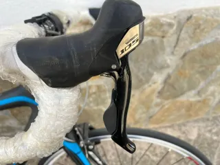 Bicicleta de carretera con cuadro de carbono. - Grupo Shimano 105. - Manillar con cinta de burbujas.