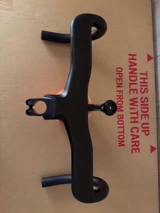 Conjunto de manillar y potencia Syncros. - Manillar de carbono syncros 1.0 42 cm de ancho - Potencia de aluminio syncros rr ic 100mm Soporte garmin No se vende por separado